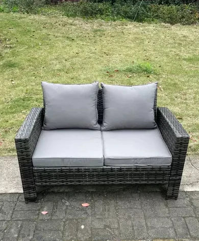 Colour: Dark Grey mixed rattan with dark grey fabric, creating a sophisticated and modern aesthetic for your outdoor space.
