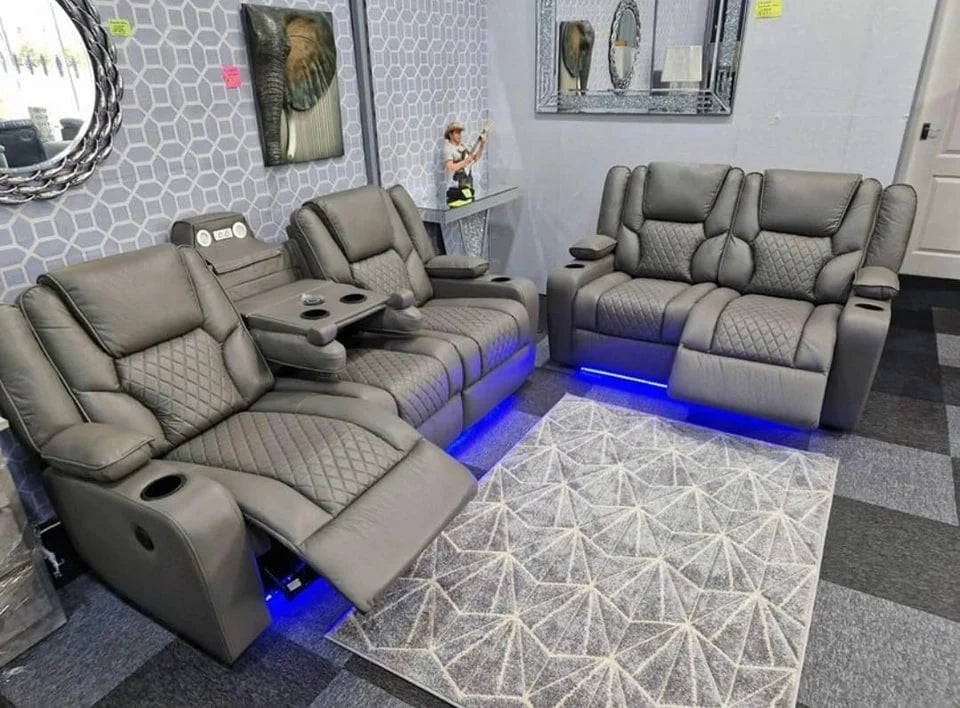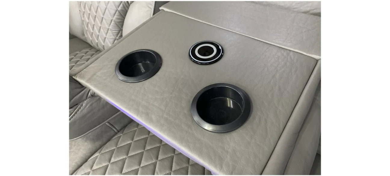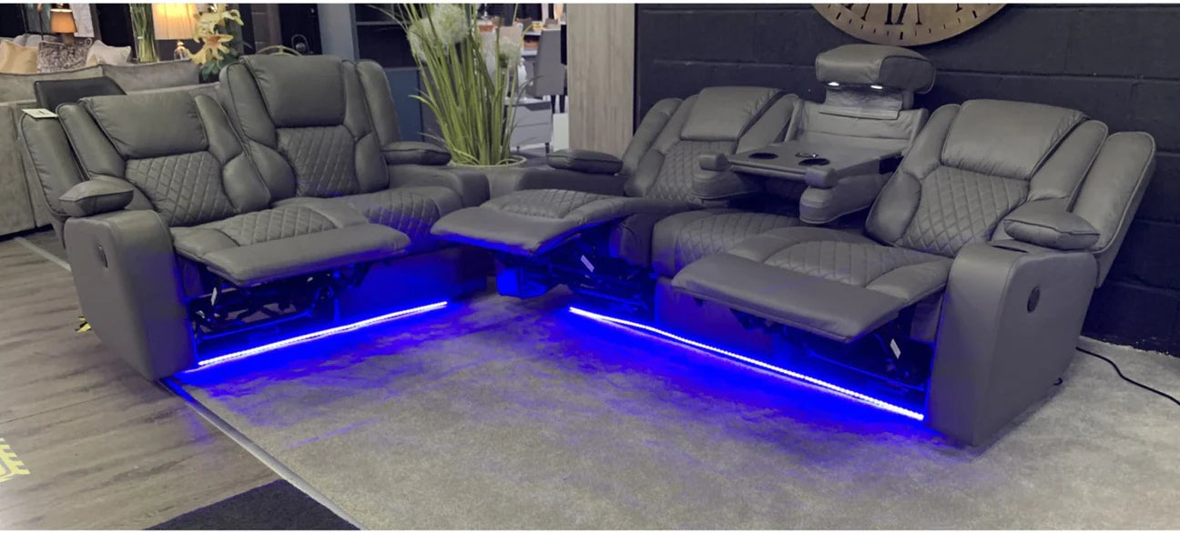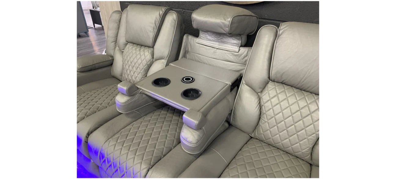 Elevate your movie nights with the allure of the Florida Leather Recliner. Now featuring two cinema cupholders discreetly nestled in the rear 3-seater center backrest, it adds a touch of glamour to home cinemas and living rooms alike.